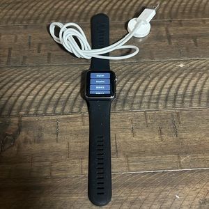 38mm Black Good used condition. Only wore a few times Will come with black sport band. No box. charger included.