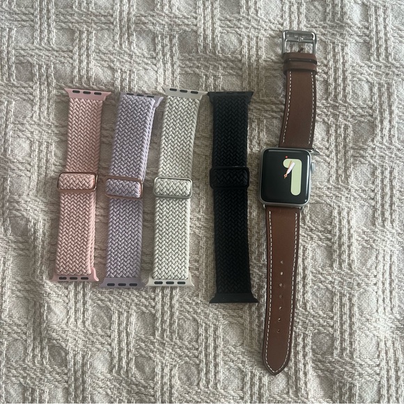Apple Watch Series 3, 38mm. Great used condition. Comes with a few bands and I have the charger as well!!