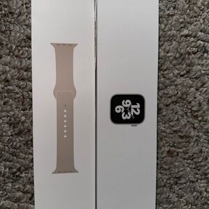 Apple Watch SE, 40mm, silver aluminum case, starlights sport band. Fully reset. S/M band a little stained, and slight scratches on the front screen. All in good condition though!