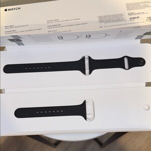 Sleek black sport band for Apple Watch. Modern and stylish design.