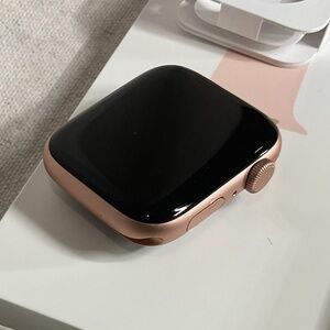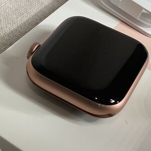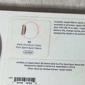 In used - okay condition. See pictures for flaws, has scratches on front and back and a deeper scratch on the corner. Comes with everything that was in box(as well as box of course). Band is in used - good condition and comes with a S/M and Large Band option that is further adjustable with buckle style watch strap - the Pink Sand Sports Band for Apple Watch SE. I have an extra usb type-C cable Apple Watch charger if you are interested please comment or DM though it is NOT included automatically I will consider including it upon request. Comes with USB-A Apple Watch charger that was originally included in box. It’s been factory reset and working but I haven’t charged it recently so if you want pictures of it on or anything else just comment or DM I’ll try and get back to you as soon as possible. Open to Offers!