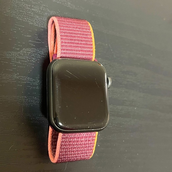 Used works great with a few minor scratches, comes with apple band.