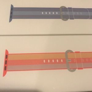 6 multi-colored nylon bands for Apple Watch Series 2 42mm. Each band is $40. If you want them all it will be $200. Most of the bands havent been worn at all, but they were tried on! lol they are super cute and theres one to match pretty much any outfit! ...Watch has been SOLD! ☺️