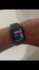 Smartwatch featuring multiple interchangeable bands in various colors. Includes shades like black, white, and tan for versatile styling. Charger included. The watch has some scratches on the face that are only noticeable with a glare.