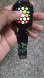 Black smartwatch band with blue floral design. Stylish and vibrant.