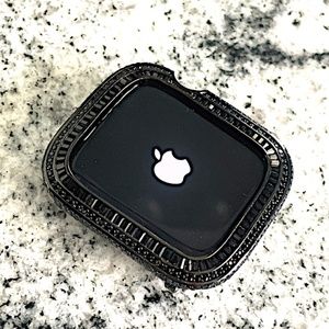 Brand new Black gold Apple Watch bezel case with baguette and round diamonds plated in 14k black gold. Please look at the back of your Watch for the exact millimeter size and series as they are all different in fit.The Apple Watch is not included, you cannot use a screen protector and the Apple Watch face is very resistant to scratches. The bezel case adds great protection for your Watch. This is an accessory that goes over your existing Apple Watch, the Apple Watch itself is not included.