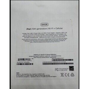 The product is an empty box for the Apple iPad 10th Gen 64 GB Wi-Fi with a 10.9 inch screen size in a blue color. This box is specifically designed for the 2022 model of the Apple iPad and does not include the tablet itself. It is a genuine Apple product and is perfect for those who need a replacement box for their iPad or for those who want to store their iPad in its original packaging. The box is compatible with the specified iPad model and ensures that the device stays safe and secure during storage or transport.