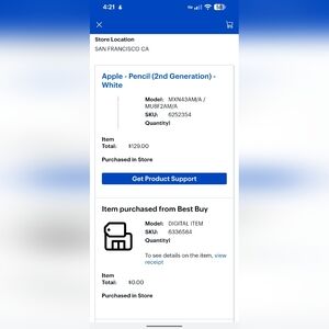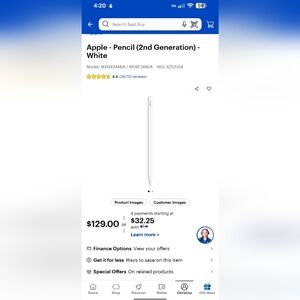 This is the Apple iPencil 2nd Generation. It is magnetically attached to an iPad to charge. It doesn't have a charge port like the original pencil. this iPencil was very lightly used. The tip is near mint. I purchased this iPencil at the same time as an iPad Pro which unfortunately broke. I no longer have the box for the iPencil. Attached are screenshots showing the date of purchase from Best Buy as well as specs and compatibility. Please let me know if you have any questions.