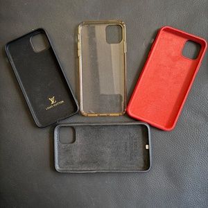 Three cases, and a genuine Apple 11 Pro Max Charger case which fits on the phone so you don't have to carry an extra charger. 4 pieces total sold all together. The charger case, alone, sold for $140. One case is clear, one is red w/ Apple logo, and one is brown and tan leather.
