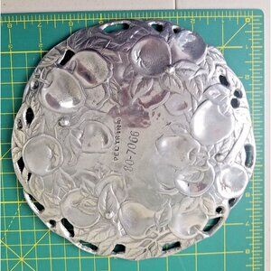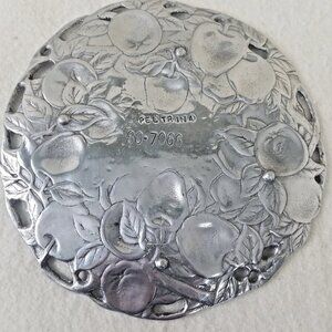 Apple plate Peltrina 80-7066 studded feet 8" leaves silver plated kitchenware
