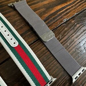 *Watch bands are all compatible with Apple size 40MM, but none of them are actually the Apple brand. I purchased them all on Amazon and used on my Apple Watch SE. All are in good condition. The mesh one has some scratches on the latch and one tiny piece of the metal that needs bent back down so it doesn’t catch on your sleeve.