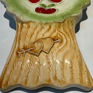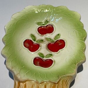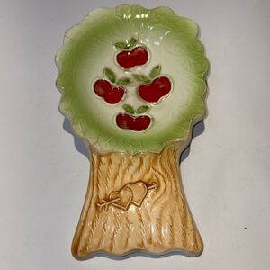 Add charm to your kitchen with this apple tree ceramic spoon rest. Featuring vibrant red apples and a green leafy design, it's both functional and decorative.