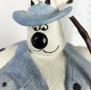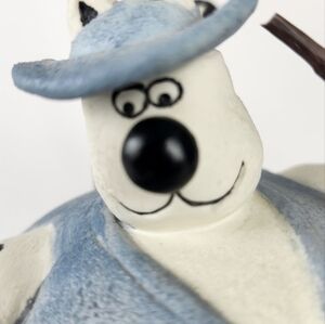 AppleTree Designs Fat Cat Fisherman Pottery Figurine. By Eduardo