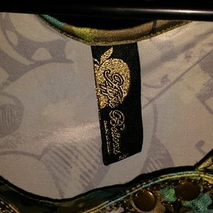 Really cute Stretchy Polyester and Spandex apple bottom club dress. It has a different shades of green in it as well as brown. It has a short sleeve shoulder one one side and a drop shoulder on the other side. I have never worn this dress before and bought it in New York.