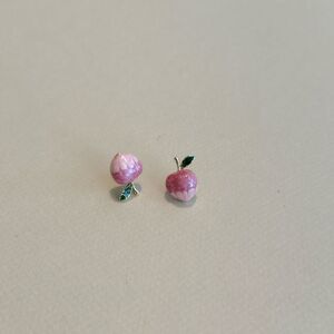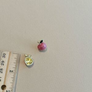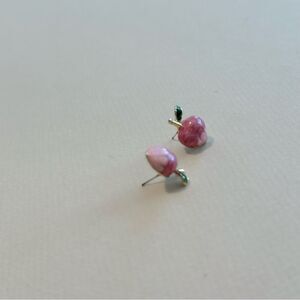 Pink enamel dainty apple stud earrings in gold tone hardware