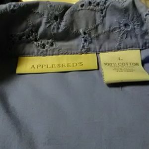 Blueush purple with cuffed sleeves. Appleseed cotton eyelet Jean style jacketwirh matching long sleeve shirt.
