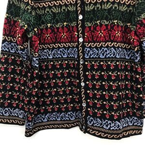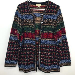 Appleseed’s Black Colorful Pattern Nordic Knit Button Up Cardigan Sweater