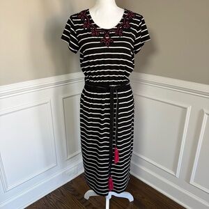 Appleseed’s Black and White Striped Midi Dress Size Small