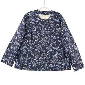 Appleseeds Blue Floral Print Cottage Button Front Long Sleeves Denim Jacket 24W