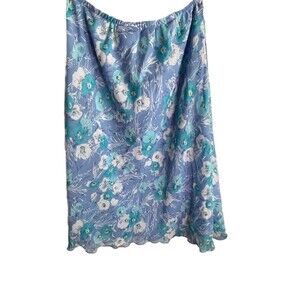 Appleseed’s Blue Floral Print Skirt Size 14 Elastic Waist Vintage Lined