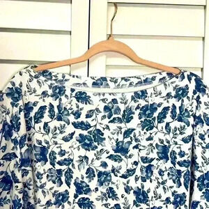 Appleseed’s Cotton Blue & White Floral Elbow Sleeve Top Size 3X
