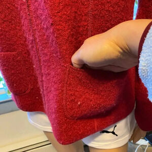 Appleseed’s Grannycore Wool Full Zip Red Cardigan Jacket Women's PM Pockets