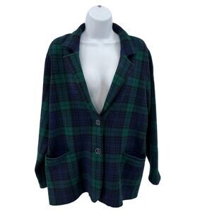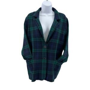 Appleseed's Green/Blue Plaid Sweater Sport Blazer Jacket Womens M Button Front