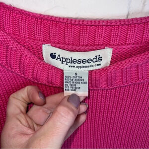 Appleseed’s Hot Pink Cotton Winter Knit Long Sleeve Sweater, Women’s Size Small