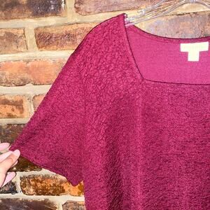Appleseed's Maroon Red Scrunch Stretch Short Sleeve Square Neck Top Size XL