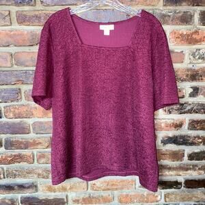 Appleseed's Maroon Red Scrunch Stretch Short Sleeve Square Neck Top Women's Size XL