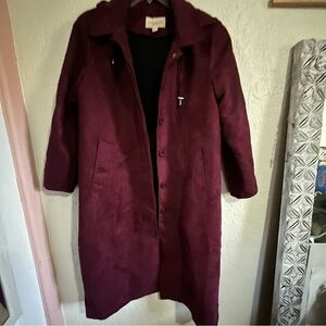 Wine colored versatile multi-season coat, optional hood and welt pockets.
