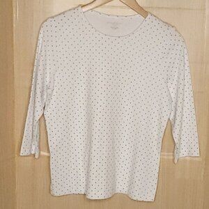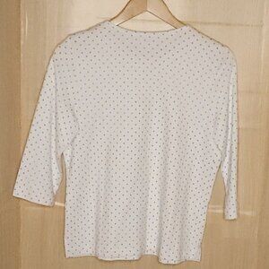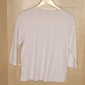 Appleseed’s women’s petite pink teal polkadot shirt bundle MP. Good condition. Measurements are: 17” sleeve, 23” from shoulder to hem, and 19 ½" from armpit to armpit.