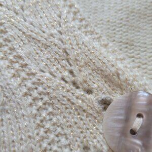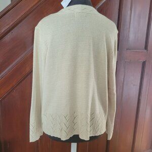 Appleseeds Petite Womens Gold Shimmer Acrylic Blend Cardigan Sweater Chevron Hem