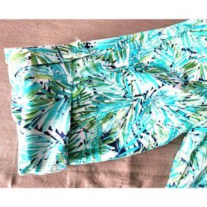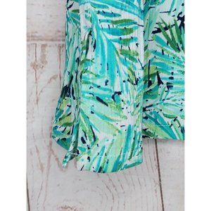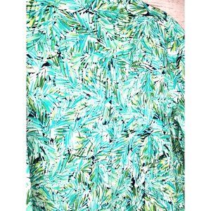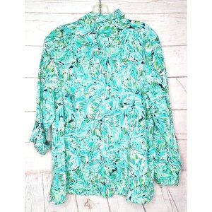 Appleseeds Petites PXL Floral Button Cuff Green Women Full Button Shirt