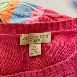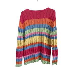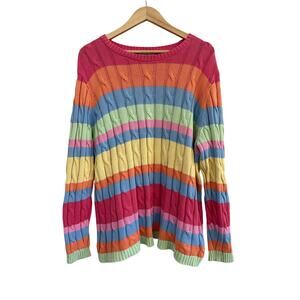 Appleseeds Rainbow Striped Pullover Cable Knit Sweater Womens Size 1X