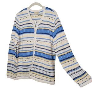 Appleseed's Sweater Women's Size XL 100% Cotton Yellow Blue Striped GrandmaCore