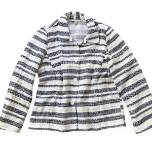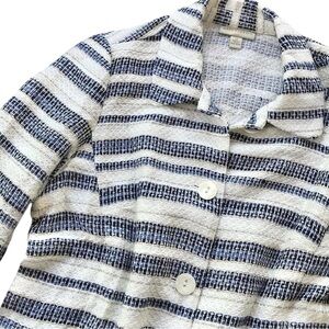 Appleseeds Tweed Knit Striped Buttoned Jacket Ivory White Navy Blue Size 14