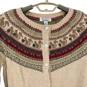 Appleseeds Vintage Womens Squirrel Fair Isle Cardigan Sweater Size Petite Small