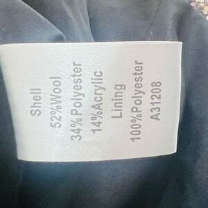 Material: Shell - 52% Wool, 34% Polyester, 14% Acrylic