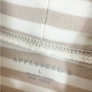 Appleseeds Womens Turtleneck Shirt Striped Tan Cream Beige 100% Cotton Large