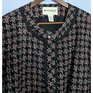 Appleseeds Womens Tweed Jacket Sz 20 Black & Pink Plaid Long Sleeve Lined