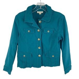 Appleseed's Women's Button Down Jacket Blazer Collared Pockets Teal Green Medium