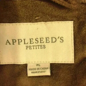Appleseed’s faux suede hooded coat. Hood can be detached. Two side pockets with snap closure. Zipper & snap close. Measurements are 22-1/2” from armpit to armpit and 25” in length. Petite Large.