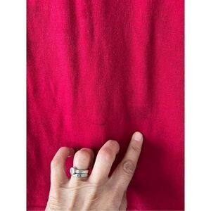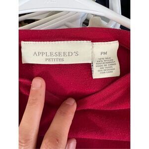 apple seeds, petite medium silk and nylon red long sleeve sweater, shirt couple of small stains, not very noticeable when wearing, priced accordingly, pit to pit 18 inches, shoulder to bottom 18 inches, three-quarter length sleeve 17 inches