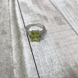 Appletini gemstone in a silver setting. Size 7