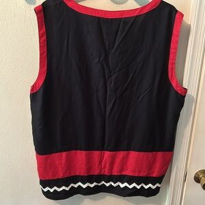 Made in India, this is a gorgeous example of needlework used to make this one size lightweight vest. Perfect with that black, red, or white skirt/pants/leggings. Each button closes securely with a black loop.