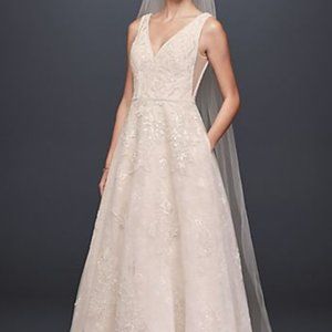 Appliqued Tulle-Over-Lace A-Line Wedding Dress