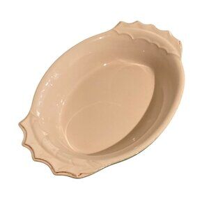 This Appolia baking dish is crafted from durable ceramics, features a classic oval design, and is ideal for serving baked meals. Its neutral beige color complements various table settings.