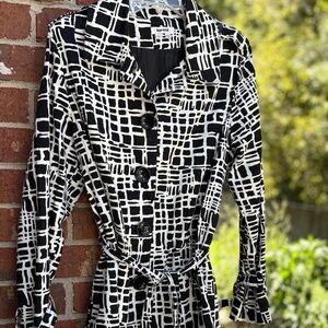 Appraisal Black & White Abstract Print Trench Coat – Size L