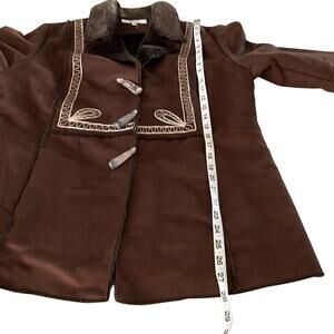 Appraisal Brown Faux Suede Faux Fur Jacket Fall Winter Coat Embroidered Cozy